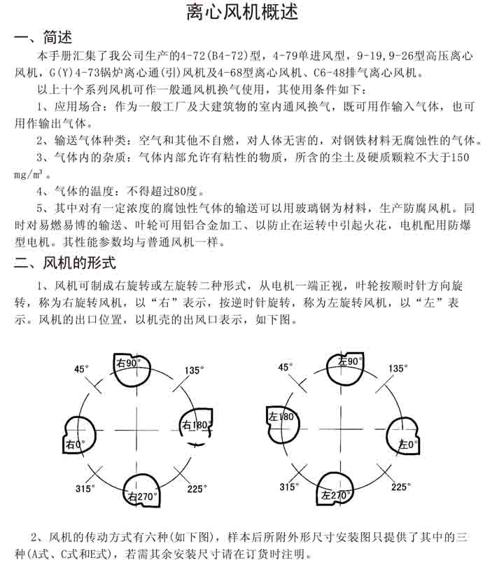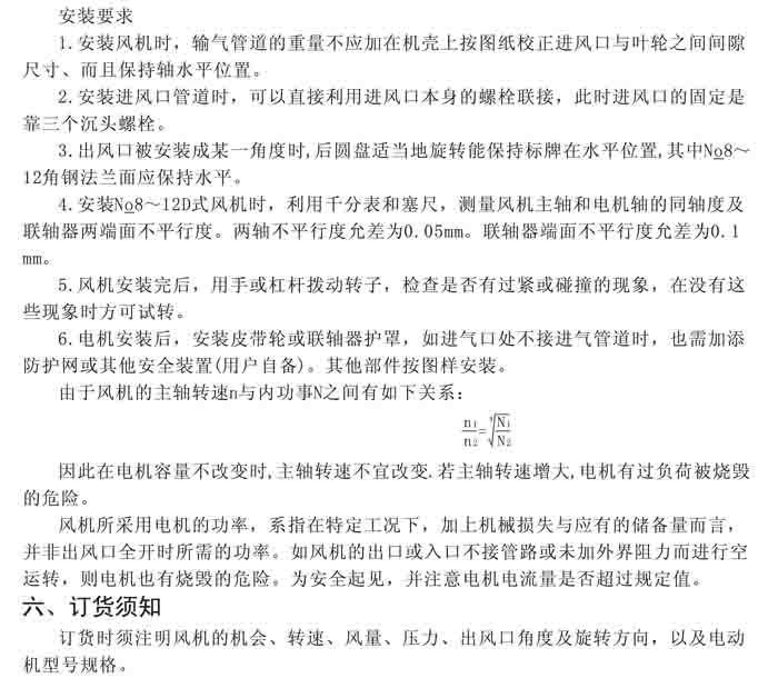 一、風(fēng)機選用參考、安裝維護(hù)使用說明、常見故障分析、訂貨注意事項