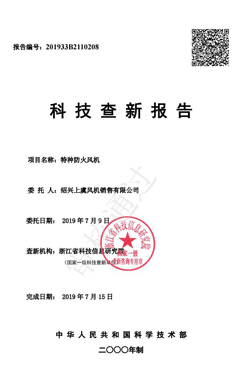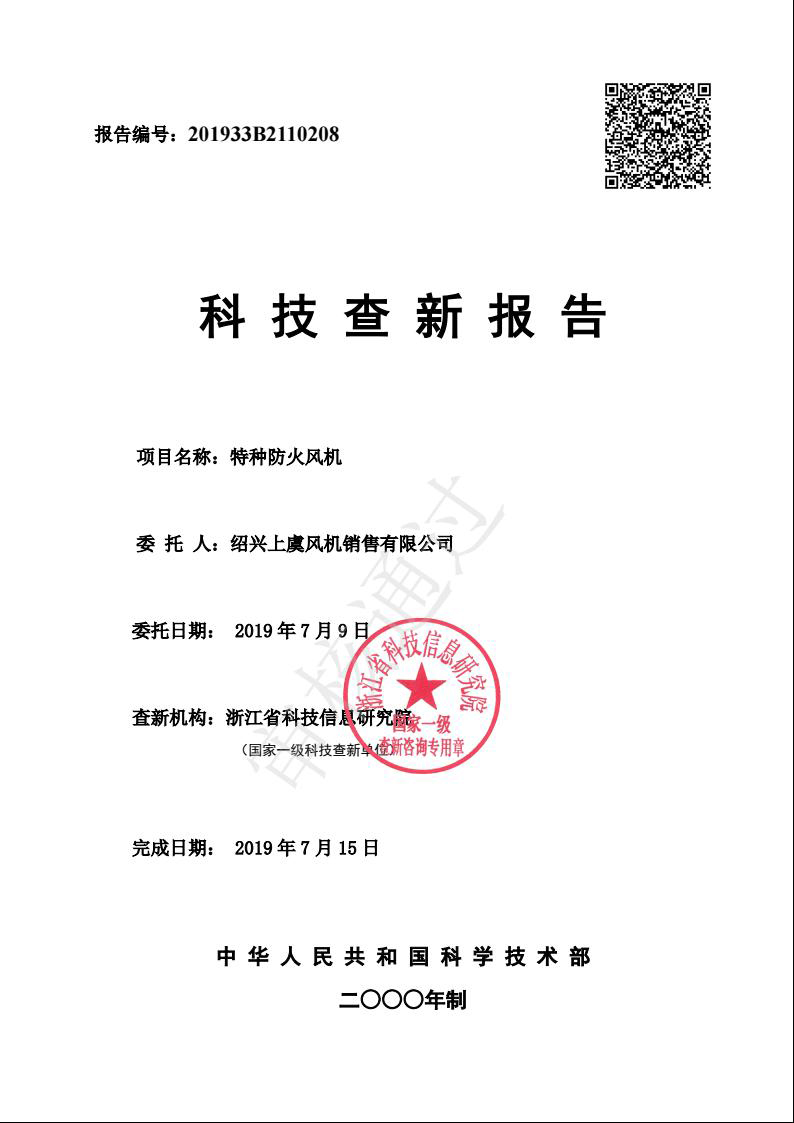 科技查新報告(耐高溫消防排煙風機)