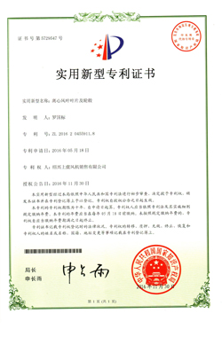 離心風機葉片及輪轂專利證書